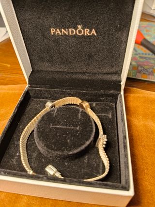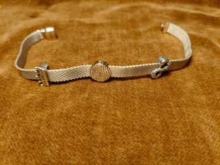 Elegante bracciale Pandora Reflections in maglia mesh, perfetto per personalizzare il tuo stile. Include tre charms, rimuovibili e posizionabili a piacimento. In argento sterling 925. - Maglia mesh in argento. - Chiusura con logo Pandora. - Charm a forma di corona con zirconi. - Charm a disco tempestato di zirconi. - Charm a forma di infinito.