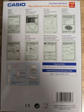 Calcolatrice grafica Casio ClassPad 330 Plus, ideale per studenti e professionisti della matematica. - Funzione Pen Touch Operation. - Drag and Drop tra 17 applicazioni. - Display ad alto contrasto e ampio (240x160 pixel). - Memoria: 500KB RAM, 5.5MB Flash ROM per eActivity, 6MB USB Flash Drive. - Include cavo USB.