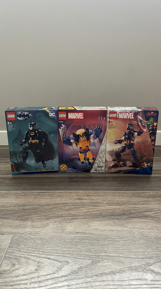 Set di tre action figure LEGO. - LEGO DC Batman 76257 - LEGO Marvel Wolverine 76259 - LEGO Marvel Captain America 76258 Tutti set nuovi, sigillati