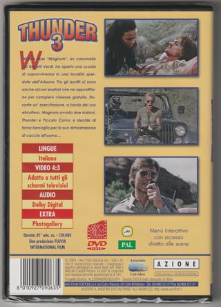 .DVD Originale, Nuovo e Sigillato Thunder III (1988) Supporto: DVD Genere: Azione Regia : Larry Ludman Cast : John Phillip Law, Mark Gregory, Werner Pochath Durata : 81 minuti c.a. Formato : 4:3 Lingua : Italiano 2.0 Sottotitoli : \ Region Code : Pal 0 Contenuti Extra : Photogallery Distribuzione : Avo Film (2004) Barcode : 8010927090635