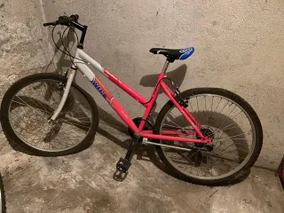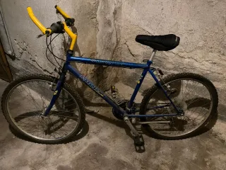 Bicicletta da mountain bike di colore blu rossa mis 24 - Manubrio giallo. - Sella nera. - Ruote da mountain bike.