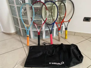 - Racchetta Dunlop Nitro - Racchetta Head - Racchetta con impugnatura in cuoio - Racchetta con impugnatura nera regalo qualche pallina, disponibili una trentina,prese tutte a 8 € l'una, con tubi palline in regalo