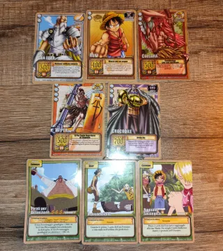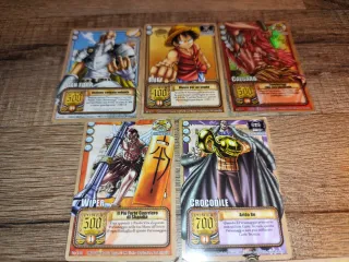 Lotto di carte del gioco di carte collezionabili di One Piece. - Carte presenti: Gan Forr, Rufy, Calgara, Wiper, Crocodile, Usop. - Carte con poteri e abilità speciali.