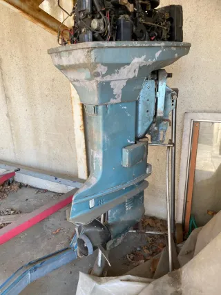Cedo motore barca fermo da un po ,c'è anche il coperchio del motore tirato via per farlo vedere. Motore fuoribordo di colore blu, con segni di usura dovuti al tempo. - Colore blu - Usato