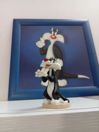 Quadro con la figura di Silvestro, il famoso gatto dei cartoni animati. - Figura dettagliata di Silvestro. - Cornice blu inclusa.