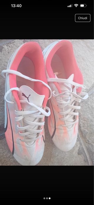 Scarpe da calcio Puma. - Colore bianco e rosa. - Taglia 41.