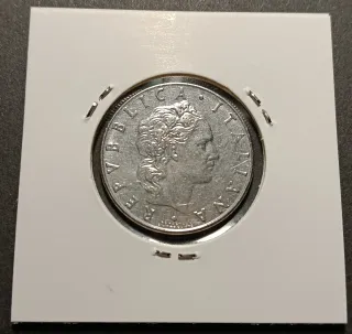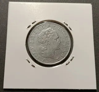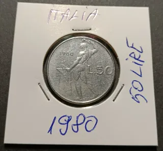 Moneta da 50 Lire della Repubblica Italiana, coniata nel 1981. - Dritto: Figura di un fabbro che colpisce un'incudine. - Rovescio: Stemma della Repubblica Italiana. - Anno di coniazione: 1981. - Valore nominale: 50 Lire.