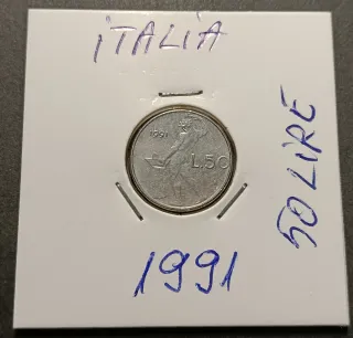 Moneta da 50 Lire italiane coniata nel 1991. - Dettaglio: ITALIA - Valore: L.50 - Anno: 1991