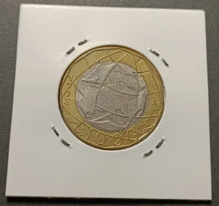 Moneta da 500 Lire italiane del 1996. - Dritto: Istituto Nazionale di Statistica. - Rovescio: 500 LIRE e ITALIA con anno 1996. - Bimetallica con bordo argentato e centro dorato.