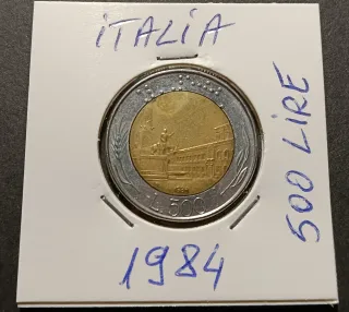Moneta da 500 Lire italiane coniata nel 1985. - Dritto: raffigurazione del Colosseo. - Rovescio: raffigurazione di un quadriga. - Valore nominale: 500 Lire. - Anno di coniazione: 1985.