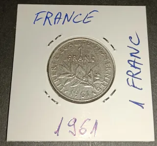 Moneta da 1 Franco francese del 1961. - Dritto: LIBERTE EGALITE FRATERNITE - Rovescio: 1 FRANC e ramo di alloro - Anno: 1961