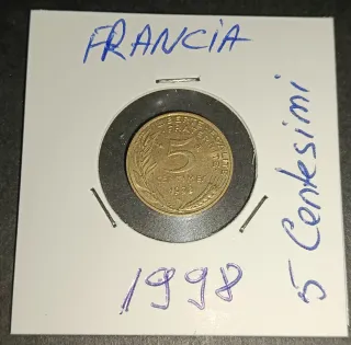 Moneta da 5 centesimi di Franco. - Anno di conio: 1998 - Valore: 5 centesimi - Paese: Francia