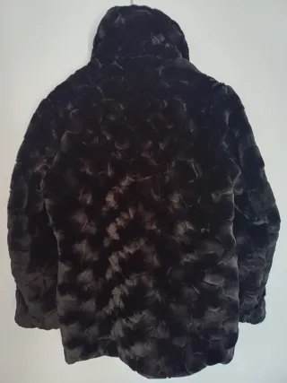 Elegante giacca in pelliccia sintetica con un design unico. - Materiale morbido e caldo. - Colore nero intenso. - Con tasche