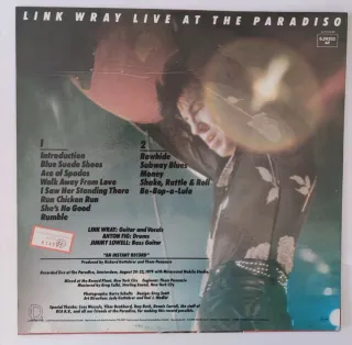 Link Wray – Link Wray Live At The Paradiso Line Records – 6.24202 LP Germania 1980 Prima stampa -- copertina Near Mint -- disco Near Mint