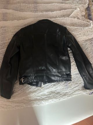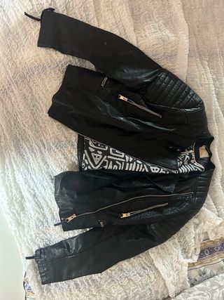 Giacca in ecopelle con un design moderno e dettagli curati. - Maniche lunghe con zip. - Dettagli trapuntati sulle spalle. - Chiusura frontale con zip. - Tasche laterali con zip.