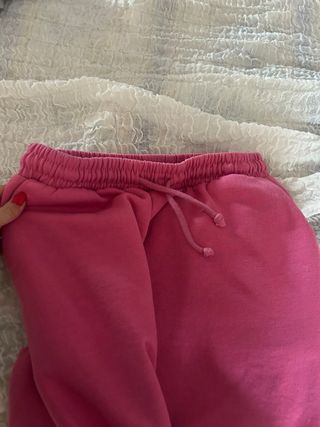Tuta sportiva in un vivace colore rosa, perfetta per il tempo libero. - Vita elasticizzata con coulisse. - Tessuto morbido e confortevole.