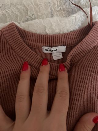 Maglione a costine color rosa, perfetto per un look casual. - Maniche lunghe. - Girocollo.