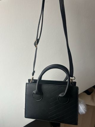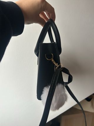 Elegante borsa nera, perfetta per ogni occasione. Dotata di manici e tracolla regolabile per una maggiore versatilità. - Design trapuntato a spina di pesce. - Pompon bianco in pelliccia sintetica come accessorio. - Chiusura con cerniera. - Tracolla rimovibile e regolabile.