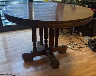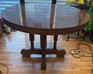 Elegante tavolo rotondo in legno, perfetto per la sala da pranzo. La sua forma circolare favorisce la convivialità. - Diametro: 120 cm - Estensione: 40 cm