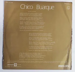 Chico Buarque - Construção Philips – 6349 017 Vinile, LP, Album Brazil 1971 Prima edizione --inserto --copertina come da foto allegate, schiacciata nell'angolo inferiore destro --disco solido VG+