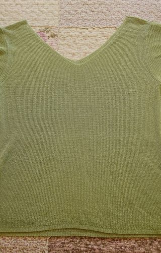 Maglietta a maniche corte con scollo a V. - Tessuto a costine. - Dettagli scintillanti.