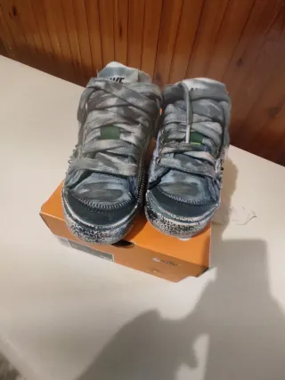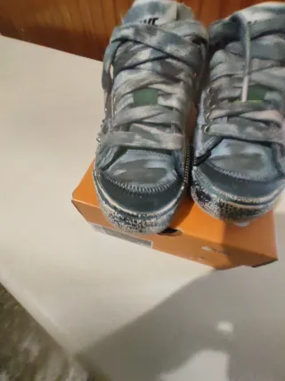 Scarpe Nike Blazer customizzate con un design unico. Usate una volta - Tomaia in tela con fantasia jeans. - Lacci grigi. - Zip laterale. - Suola in gomma.