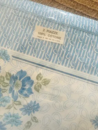 Lenzuola matrimoniali cotone blu e bianco