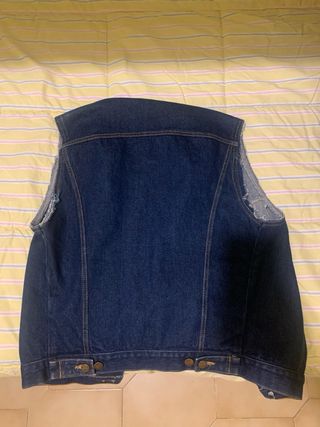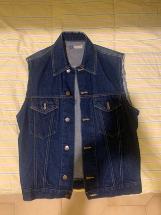 Gilet in jeans dal taglio classico. - Tessuto denim resistente. - Chiusura con bottoni. - Tasche sul petto. - Orlo sfrangiato sulle maniche. Prodotto mai utilizzato, prezzo trattabile.