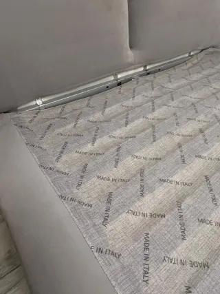 Letto Samoa con Piedini Trasparenti e Testiera LETTO MOD. CURIOUS MARCA:SAMOA LETTO CURIOUS PER MATERASSO 160 X 200 TESSUTO ART. ALYA CAT. A COL. 17 GRIGIO CHIARO. piccoli segni di usura sulla testata si vende già smontato, senza materasso Elegante letto matrimoniale con un design moderno. - Testiera imbottita in tessuto grigio. - Piedini trasparenti che creano un effetto fluttuante. - Struttura del letto rivestita in tessuto.