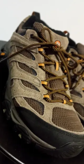 Scarpe trekking "MERRELL" mod. Moab 3 GORE-TEX n.48 (adatte anche 45/46), progettate per percorsi difficili, robustissime, tomaia in pelle di maiale, indistruttibili, colore oliva, soletta interna cm.31, indossate pochissime volte, integre, nessun danno.