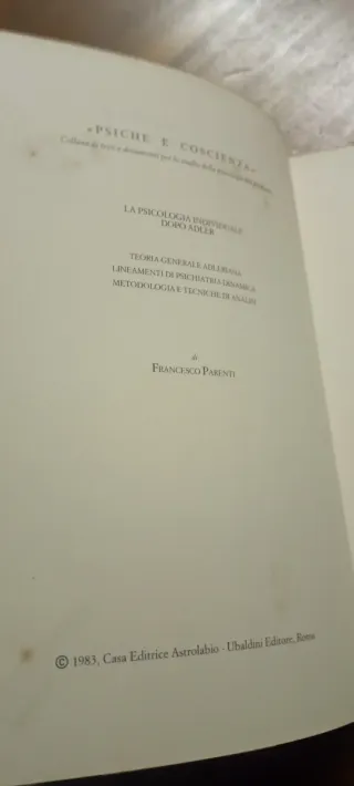 Libro di Francesco Parenti "LA PSICOLOGIA INDIVIDUALE dopo ADLER" ed. Astrolabio 1983, buone condizioni, alcuni appunti primissime pagine, macchie su inizio e fine libro, integro.