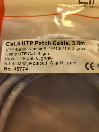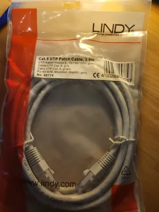 Cavo di rete UTP Cat. 6 di marca LINDY, lungo 3 metri. Il cavo è di colore grigio e si presenta nuovo, ancora nella sua confezione originale. - Cavo Patch UTP Cat. 6 - Lunghezza: 3.0m - Connettori: RJ-45 M/M - Colore: Grigio - Categoria: Classe E, 10/100/1000, Gigabit - Confezione: Moulded