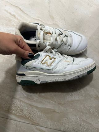 Scarpe New Balance modello 550. - Tomaia in pelle bianca. - Dettagli verdi. - Chiusura con lacci bianchi.