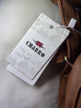 Zainetto Charro in ecopelle marrone, con etichetta. - Chiusura principale con zip. - Tasca frontale con zip. - Dettagli metallici dorati.