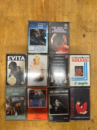 Raccolta di 10 musicassette originali in ottime condizioni. Sono incluse musiche di artisti famosi come Barbra Streisand, Richard Clayderman, Bob Dylan, e molti altri. Ogni cassetta è un pezzo unico, perfetto per collezionisti o amanti della musica vintage. - Musiche di generi diversi: classica, pop, rock, colonne sonore. - Ottimo stato di conservazione. - Perfette per collezionisti.