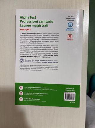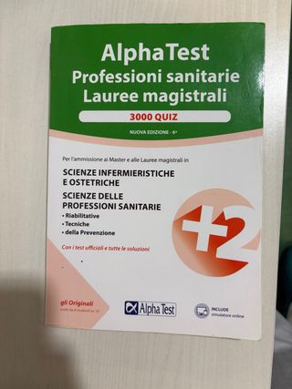 In vendita: Alpha Test Professioni Sanitarie Lauree Magistrali – 3000 Quiz Vendo libro Alpha Test Professioni Sanitarie Lauree Magistrali – 3000 Quiz (nuova edizione 6ª, 2022/2023), ideale per prepararsi ai test di ammissione per: * - Scienze Infermieristiche e Ostetriche - Scienze delle Professioni Sanitarie (riabilitative, tecniche, della prevenzione) Questo libro offre: * - 3000 domande a risposta multipla - - Test ufficiali degli ultimi anni inclusi - - Un archivio ricco e aggiornato per una preparazione completa - - Un simulatore online - Il libro è in ottime condizioni.