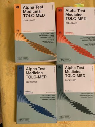 Libri per preparazione al test d’ingresso a Medicina. In particolare: - libro con 10.000 quiz - libro degli esercizi commentati - libro con simulazioni (prove di verifica) - libro del semestre filtro con 3000 quiz I quiz sono sempre gli stessi, semestre filtro si o no, I quattro volumi sono praticamente nuovi solo in uno ci sono 4 pagine evidenziate come in foto, e in quello delle simulazione una pagina a lapis., Vendo i libri insieme o separati, rimango a disposizione per vendita dei singoli libri.