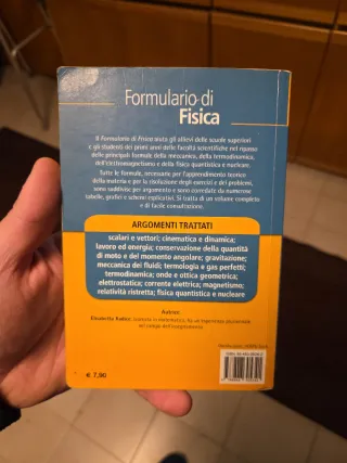 Vendo "Formulario di Fisica" della collana Gli Spilli (Alpha Test). Autrice: Elisabetta Radice. ISBN: 8848305342 Indispensabile per il ripasso di: cinematica, dinamica, termodinamica, ottica, elettricità e magnetismo. Consigliato per la Maturità (Esame di Stato) e primi anni di università. Condizioni: Accettabili. La copertina presenta segni di usura sugli angoli e sulla costina dovuti all'utilizzo (vedi foto), ma l'interno è completo e perfettamente consultabile. Spedizione veloce. Ottimo per test d'ingresso. 🔑 Keywords Fisica, Formulario, Alpha Test, Maturità, Esame di Stato, Ripasso, Scuola Superiore, Università, Test ingresso,