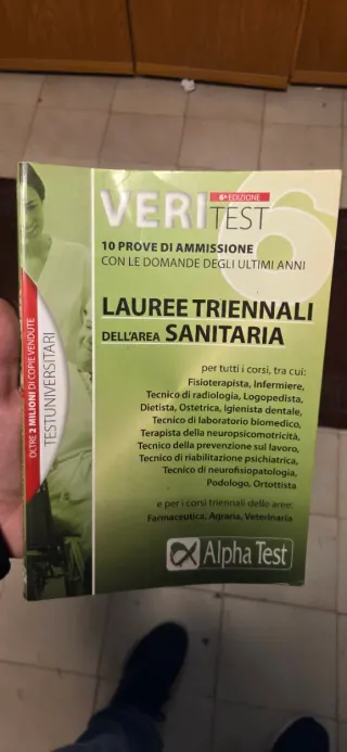 Vendo eserciziario "Veritest 6" di Alpha Test per la preparazione alle prove di ammissione delle Lauree Triennali dell'Area Sanitaria. Include 10 prove simulate con le domande degli ultimi anni e indicazioni dettagliate sulle soluzioni e i criteri di valutazione. Ideale per chi vuole diventare Infermiere, Fisioterapista, Logopedista, Ostetrica e altre professioni sanitarie. Condizioni: Molto buone. Copertina ben tenuta e interni puliti. ISBN: 9788848310581 Spedizione rapida. 🔑 Keywords Alpha Test, Veritest, Lauree Sanitarie, Test ammissione, Università, Eserciziario, Infermieristica, Fisioterapia, Professioni sanitarie, Quiz, Prepa