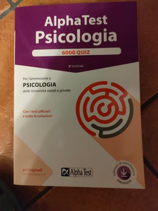 Vendo manuale Alpha Test per facoltà di Psicologia Il libro comprende sia la parte teorica, che la parte pratica agli esercizi per allenarsi (Le prime pagine saranno gia sottolineate) Per qualsiasi info o offerta contattatemi pure ;)
