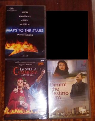In foto sono presenti i dvd mai utilizzati: - "Dunkirk" (in Blu-ray) - "Maps To The Stars" (in DVD) - "La Solita Commedia - Inferno" (in DVD) - "Dimmi che destino avrò" (in DVD) Le confezioni sono intonse. E' disponibile su richiesta un elenco con un'interessante varietà di titoli di film in dvd usati, anche musicali come Pink Floyd e Queen.