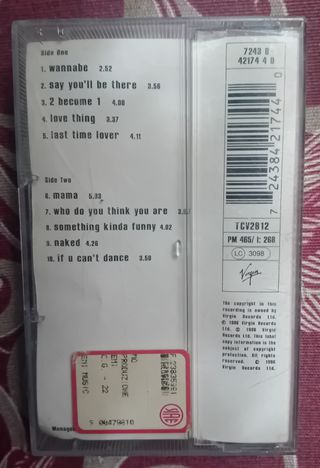 Le Spice Girls, gruppo musicale britannico, nel 1996 pubblicarono il loro primo album "Spice", contenente 10 canzoni. Vi propongo la musicassetta. Ben tenuta e ben conservata.