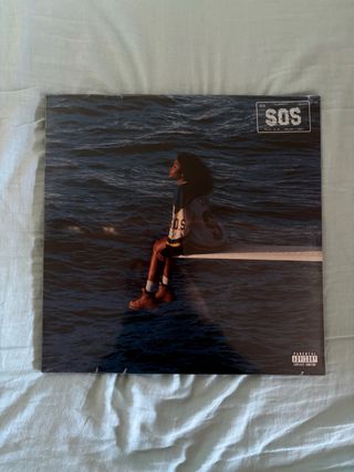 Vinile dell'artista SZA, album SOS. - Copertina con immagine iconica. - Etichetta Parental Advisory.