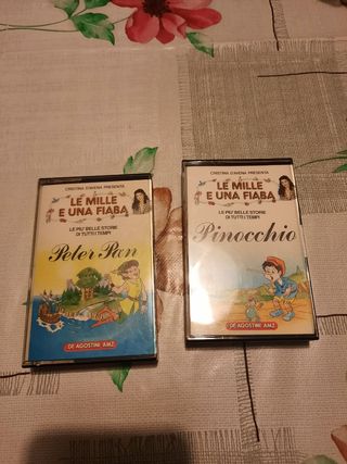 Due musicassette e due libri illustrati della collezione "Le Mille E Una Fiaba" con Cristina D'Avena. Anno 1989. Fiabe di Peter Pan e di Pinocchio. Disegni sull'interno delle copertine delle musicassette, come da foto. I libri (soprattutto quello di Peter Pan) hanno la copertina un po' ingiallita, pagine in perfette condizioni.