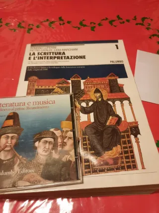 R. Luperini, P. Cataldi, L. Marchiani, "La scrittura e l'interpretazione" Edizione Blu, Vol. 1 "Il Medioevo latino e lo sviluppo delle letterature europee dalle origini al 1380", Palumbo. Con CD allegato "Letteratura e musica dal Medioevo al primo Rinascimento". Libro tenuto molto bene, foderato con copertina trasparente che si può togliere. All'interno alcune sottolineature o scritte solo a matita. CD in perfette condizioni.