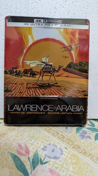 Edizione speciale Lawrence d'Arabia in formato Steelbook. Audio italiano inglese francese spagnolo e tedesco - Include disco 4K Ultra HD e Blu-ray. - Edizione limitata per il 60° anniversario.