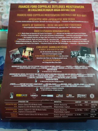 pocalypse Now (1979) by Francis Ford Coppola I Blu-Ray sono in condizioni ottime. Full disclosure 3 disc Deluxe Edition. Audio: Tedesco, Inglese Sottotitoli: Tedesco, Tedesco per non udenti, Inglese Sottotitoli 3° disco: Tedesco, Spagnolo, Italiano, Olandese, Giapponese Attenzione: Non è presente la lingua Italiana, Solo nel 3° Blu-Ray ci sono i sottotitoli in Italiano. Blu-Ray Regione B