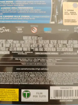 Film Inception in formato Blu-ray. - Con Leonardo DiCaprio. - Regia di Christopher Nolan. - Lingua: Inglese, Italiano.