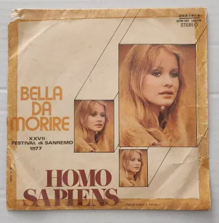Vinile vintage Bella da Morire di Homo Sapiens, Festival di Sanremo 1977. - Copertina originale. - Etichetta RIFI. - Codice catalogo: RFN-NP 16699. - Formato: Stereo.