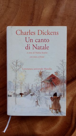 Libro 'Un canto di Natale' di Charles Dickens Testo in inglese a sinistra, con traduzione italiana a destra. Con copertina rigida e carta copri copertina originale con illustrazione. Usato ma conservato con cura, le pagine sono igiallite col tempo e un angolo in alto nella copertina é rovinato (foto).